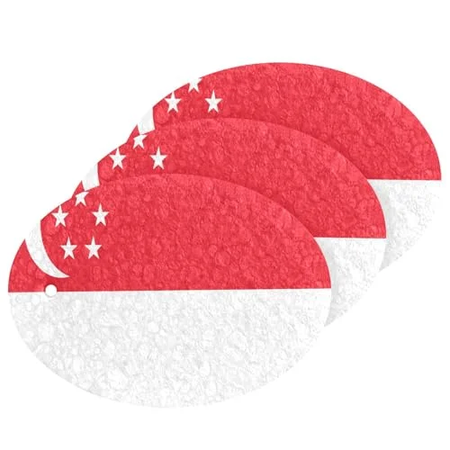 RUHHO Singapore Flag Grunge Design Kitchen Sponges combine functionality with aesthetics. Made from high-quality wood pulp cotton, these oval sponges measure 3.54 inches by 2.56 inches. Their non-scratch feature ensures safe use on delicate surfaces, while strong adsorption aids in effective cleaning.