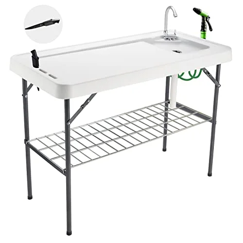 IWDOO 42.5″ Fish Cleaning Table with Sink, Folding Camping Table & Fis |