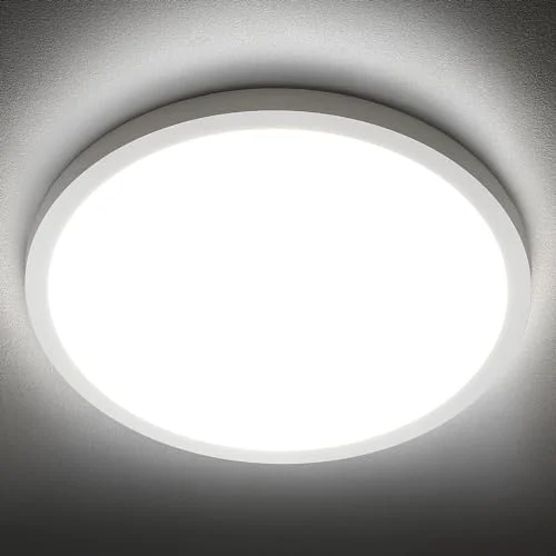 The hykolity 12 Inch Selectable CCT LED Round Flat Panel Light provides three color temperature options at the fixture. With a slim design under one inch, it offers a sleek lighting solution for kitchens and other low-ceiling areas.