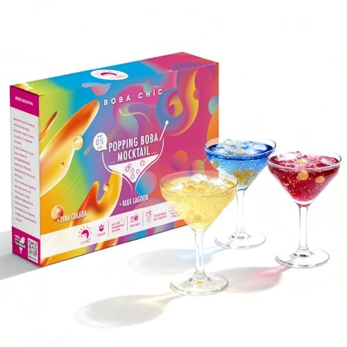 The BOBA CHiC Popping Boba Mocktail Kit offers an exciting twist on traditional drinks. Priced at $21.99, this premium kit includes three unique flavors: Queen Roselle, Blue Lagoon, and Pina Colada. With a rating of 4.5/5, it promises to enhance any home beverage experience.