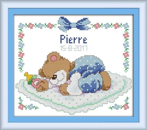 The CaptainCrafts Cross Stitch Kit showcases a charming Sleeping Baby Bear design, ideal for beginners. Priced at $12.99, this kit includes everything needed, such as presorted threads, cotton fabric, and English instructions, ensuring a smooth crafting experience.
