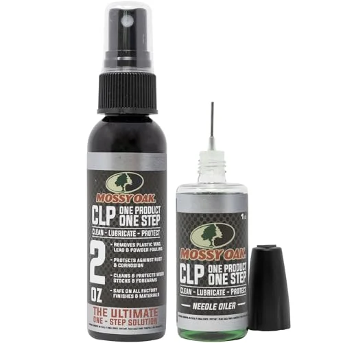 Mossy Oak CLP Gun Cleaning Oil combines cleaning, lubrication, and protection in one product. Its dual bottle design allows for versatile application. Safe for all gun materials, it creates a protective coat that resists rust and performs well in various environments.