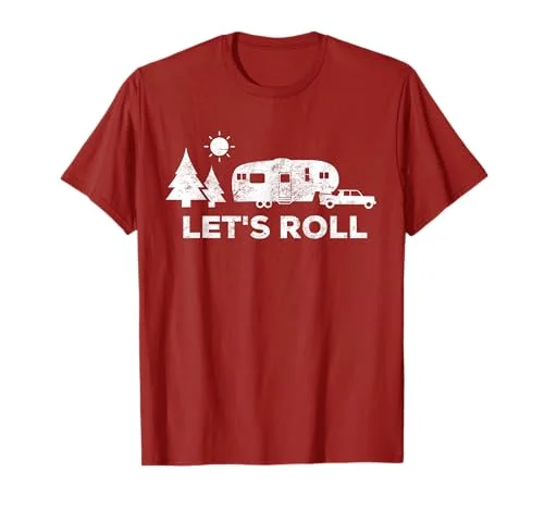Lets Roll Camping T Shirt 5th Wheel Camper RV Vacation Gift T-Shirt makes a delightful gift for RV owners and camping enthusiasts. This lightweight t-shirt features a classic fit, double-needle sleeve, and bottom hem for comfort. The design captures the spirit of adventure, making it perfect for campfires and outdoor gatherings. Its stylish look allows wearers to express their love for camping and the great outdoors.