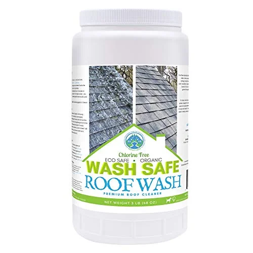 Wash Safe™ ROOF WASH Eco-Safe and Organic Roof Cleaner is a powerful and effective cleaner. It removes black streaks, green stains, and debris from various roofing materials. The 3 lb. concentrate cleans up to 3,000 sq. ft. while being safe for pets and plants, as it’s bleach-free.